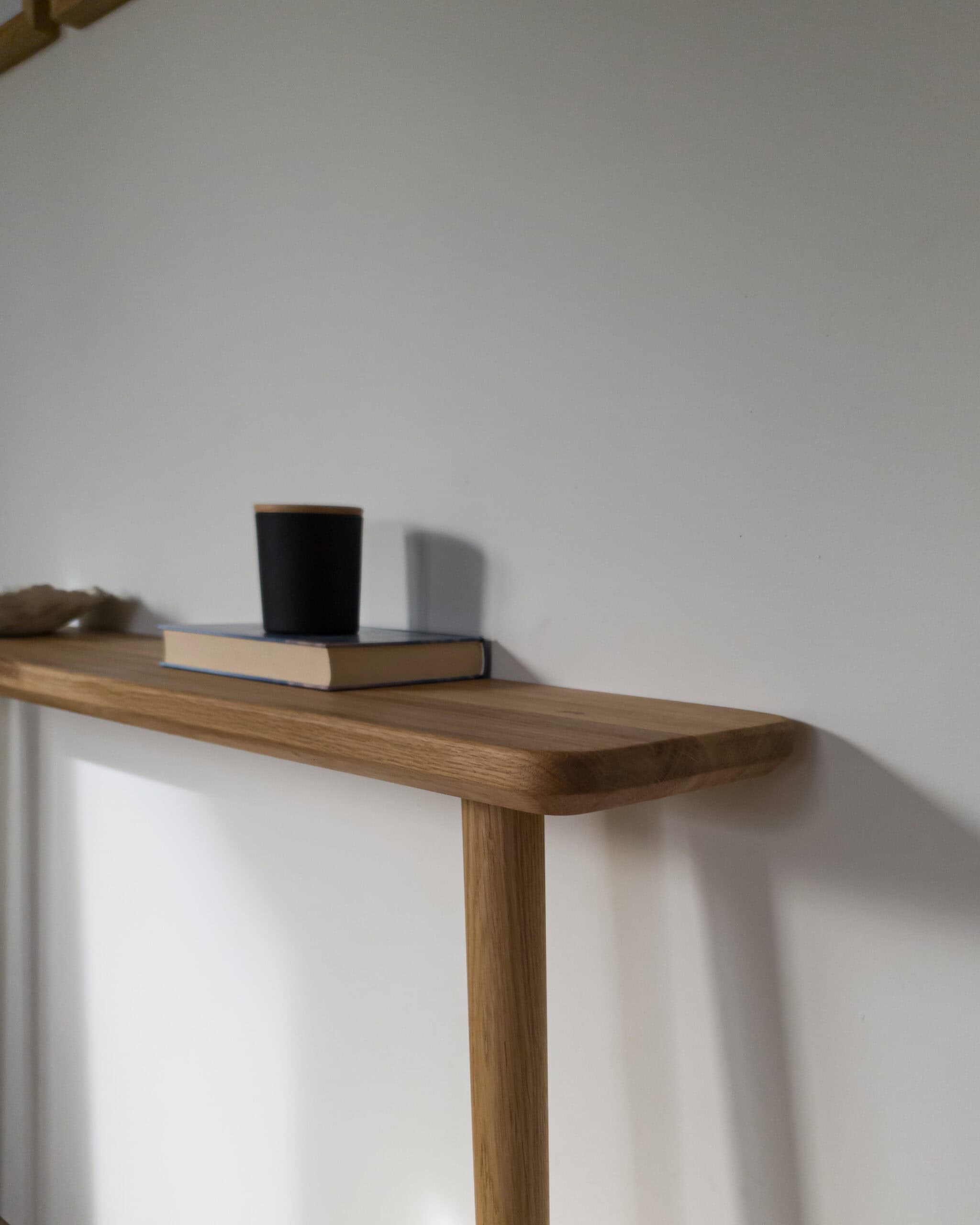 Minimalistyczna dębowa konsola MODENA z zaokrąglonym tyłem to połączenie subtelności i funkcjonalności. Każda konsola wykonana jest ręcznie z litego drewna dębowego, co gwarantuje trwałość i wyjątkowy wygląd.
